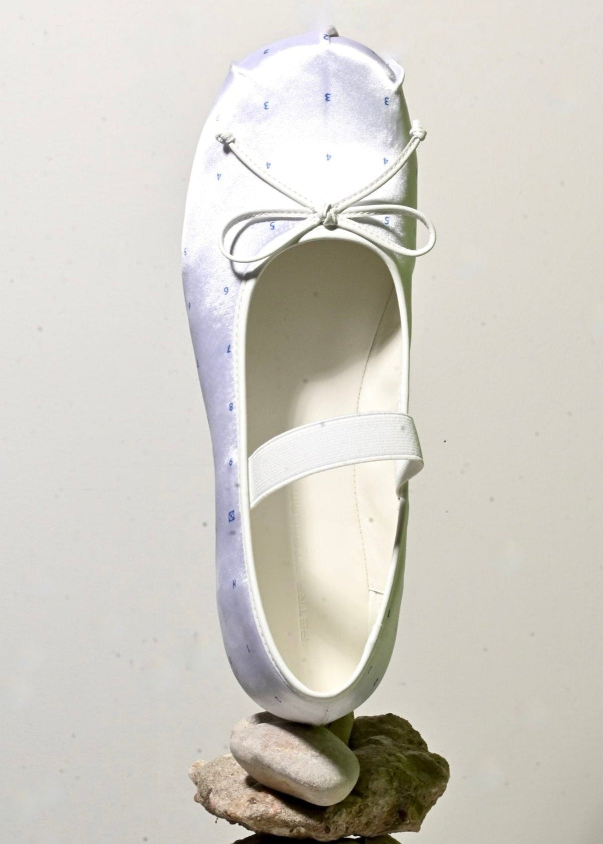Ballet Flats in refined satin adorned with an alphanumeric print reminiscent of patterning paper, boasting a structured design and complemented by leather outsoles.